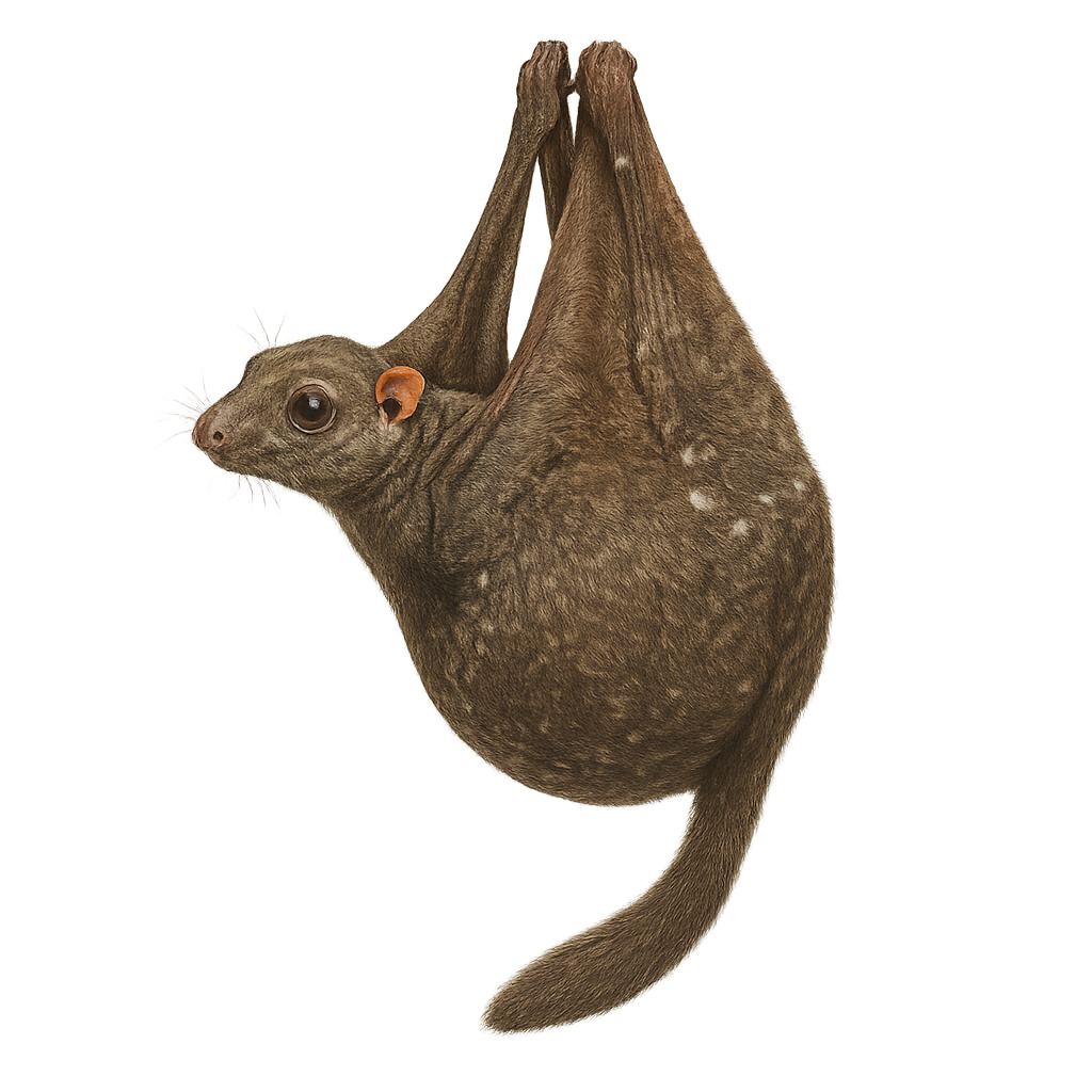 The Colugo, also known as the flying lemur, is a small tree-dwelling mammal native to Southeast Asia. While not a true lemur, it is often called so due to its gliding abilities, which it performs using a thin membrane of skin that connects its limbs to its body. This gliding allows it to move efficiently from tree to tree in search of food, primarily consisting of leaves, fruits, and flowers. The Colugo is a nocturnal and rather discreet animal, using its dense fur and camouflage to blend into the forest environment.